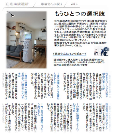 現在、当院で在宅血液透析を受けている方が24名・教育中の方が3名おられ、私たちは大きなやり甲斐を頂いています。より多くの方に在宅血液透析を選んでもらえるよう願ってやみません。